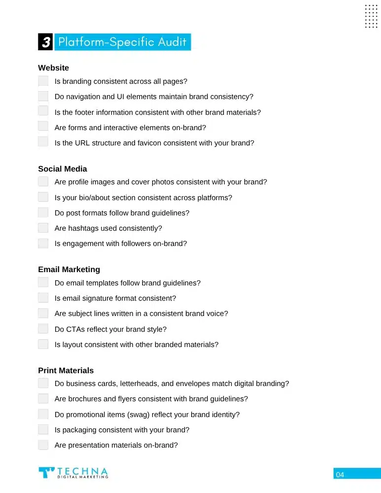 - Techna Digital Marketing: Custom, professional logos; branding guidelines; business cards; stationery; email signatures; social profile images.